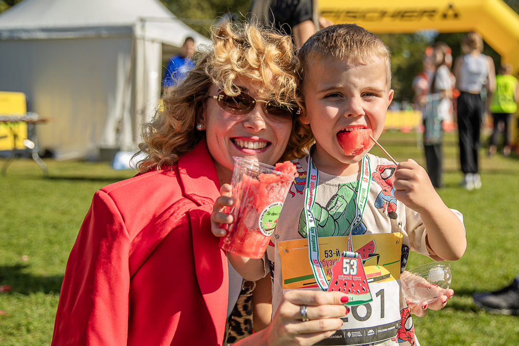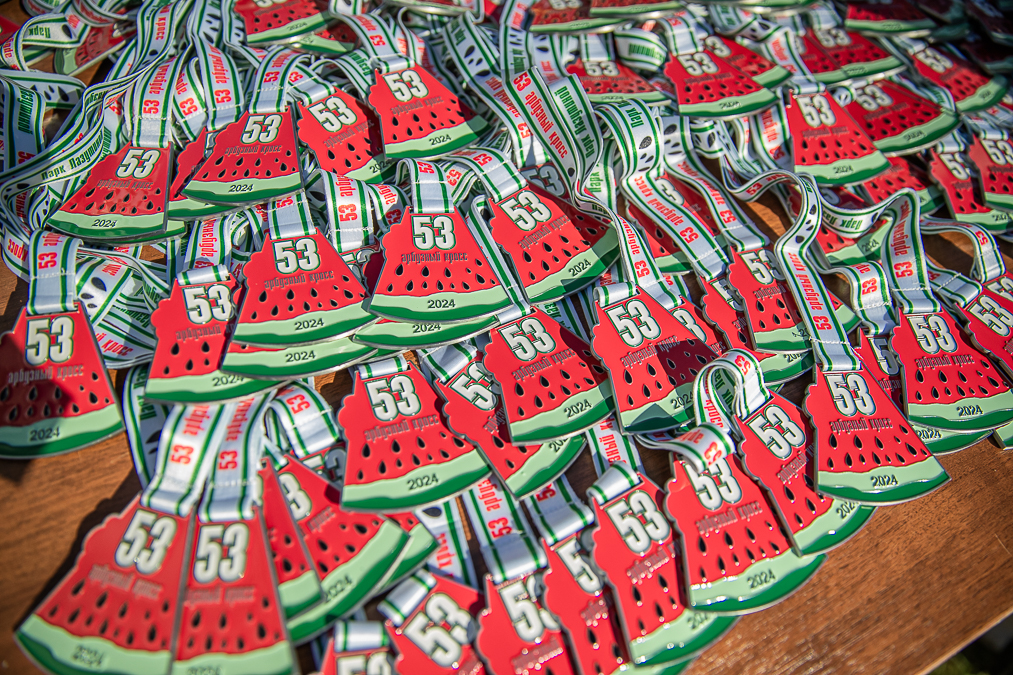 Победители забегов, помимо уникальных медалей, которые складываются с медалью прошлого года как части пазла, получали в награду спелый арбуз. Всего разыграно более 30 комплектов медалей для разных возрастных категорий на дистанциях от 600 метров до 5 километров.