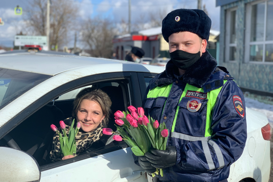 Автоледи получили цветы от сотрудников ГИБДД