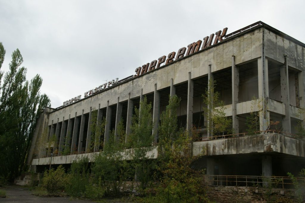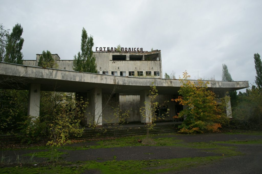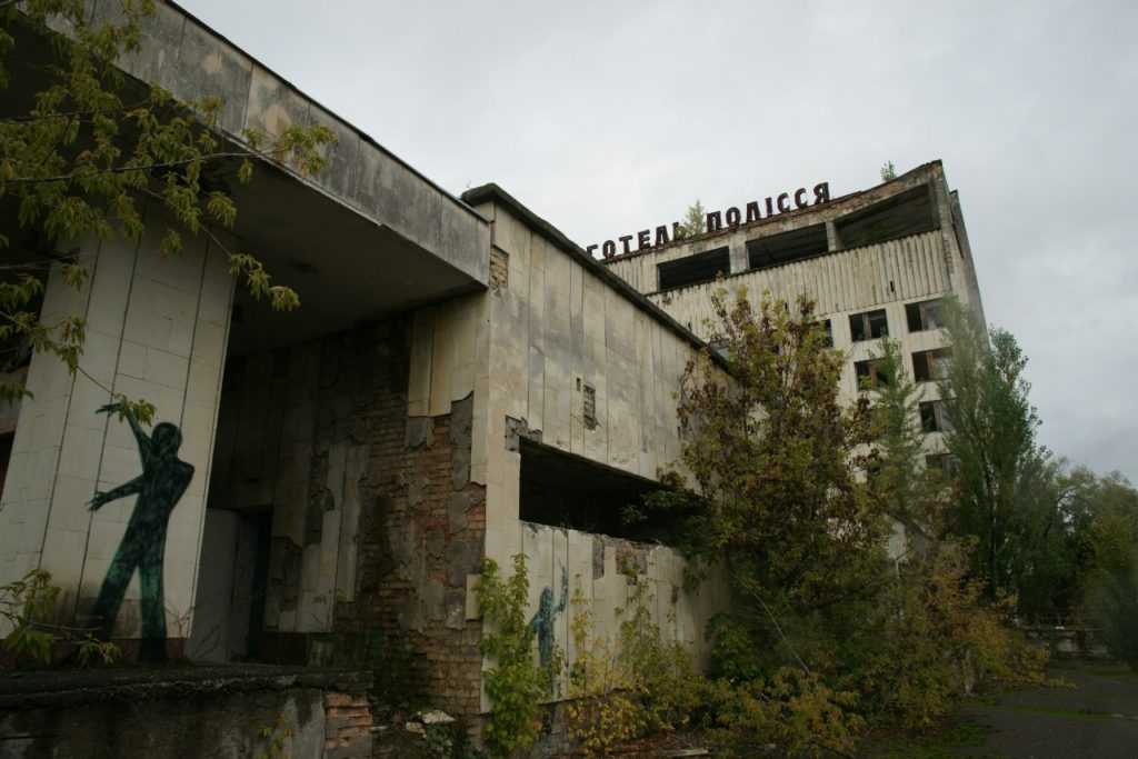 Здесь остался парк аттракционов и колесо обозрения – большое, ржавое, но целое – настоящий символ зоны. Детский сад и школа, бассейн, стадион, кинотеатр, пристань с затопленным причалом, милиция, горисполком – первый штаб ликвидации последствий аварии, отель «Полісся», больница, которая приняла первых пострадавших от аварии ликвидаторов. Многие постройки уже едва угадываются за деревьями. Идёшь по лесу – и внезапно понимаешь, что идёшь ты по улице, в кустах виднеются стелы с коммунистическими плакатами, а еле заметный асфальт взрывают корни деревьев и захватывает мох. Есть тут и дикие звери – мы видели следы кабанов и из окна автобуса – живого волка.