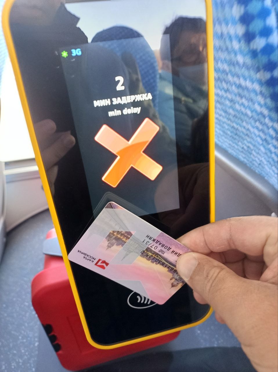В салоне — женщина в экипировке «Мосгортранса». Контролёр? Оказалось, нет, это специальный инспектор, чтобы консультировать обращающихся пассажиров по поводу особенностей поездок на автобусе-«москвиче». Люди действительно обращаются, например, у одного из пассажиров не сработала карта «Стрелка». Да, она в столичных автобусах не действует. А вот «Тройка» годится.
