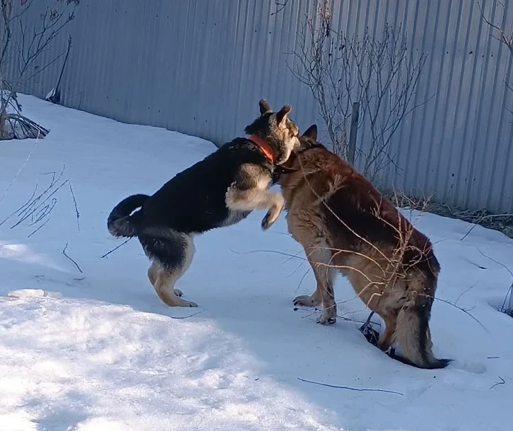 Щенок – явный «потеряшка». С ошейником и ухоженный. Был он «резов и мил». Еран же, который уже не без труда спускался с высокого крыльца и дальше трёх-пяти метров от него не отходил, преобразился. Какой возраст, какие болячки! Он вёл себя как настоящий молодой кобель. Вот она животворящая сила молодежи. Но полагаю, что на второй день его бы уже не хватило. Тяжело в нашем возрасте по два дня кобелиться. Вместе с Долбаем (на всякий случай дал ему имя – сокращенно от раздолбая) кругами бегал по снежному насту по всему участку.