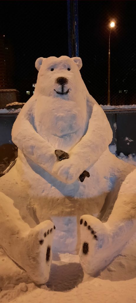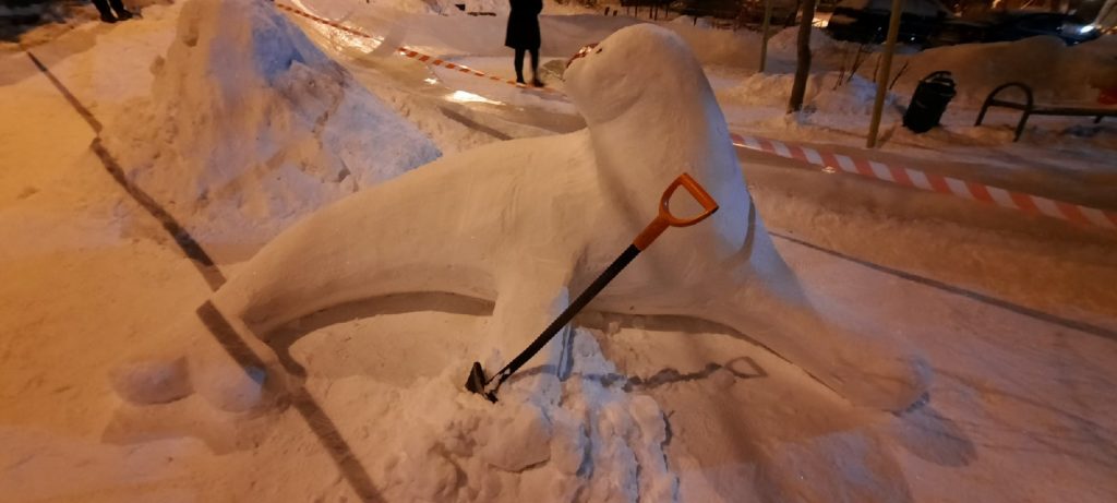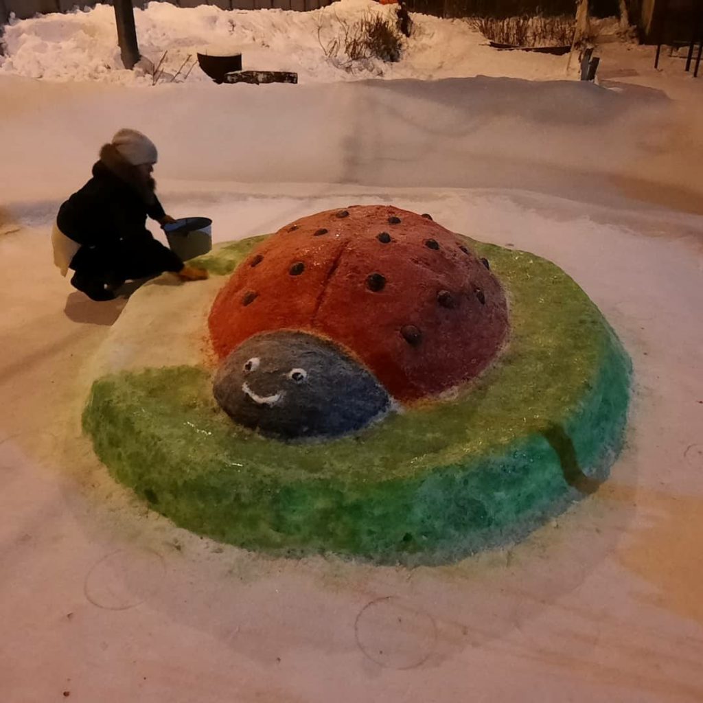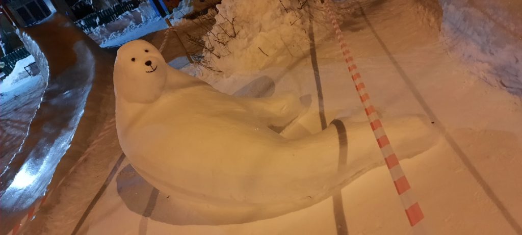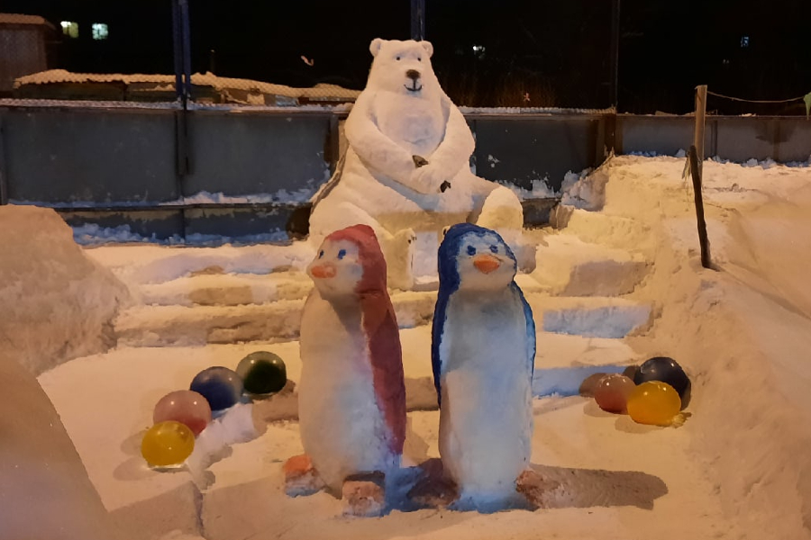 В этом году обильные снегопады позволили жителям соорудить из снега фигуры кита, морского котика, белого медведя, пингвинов, машинку, божью коровку и другие.
