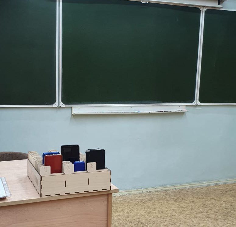 Алгоритм их хранения в одинцовских школах на сегодняшний день выглядит следующим образом. Специальные коробки на столе учителя. Перед уроком аппараты туда складывают, на перемене забирают.