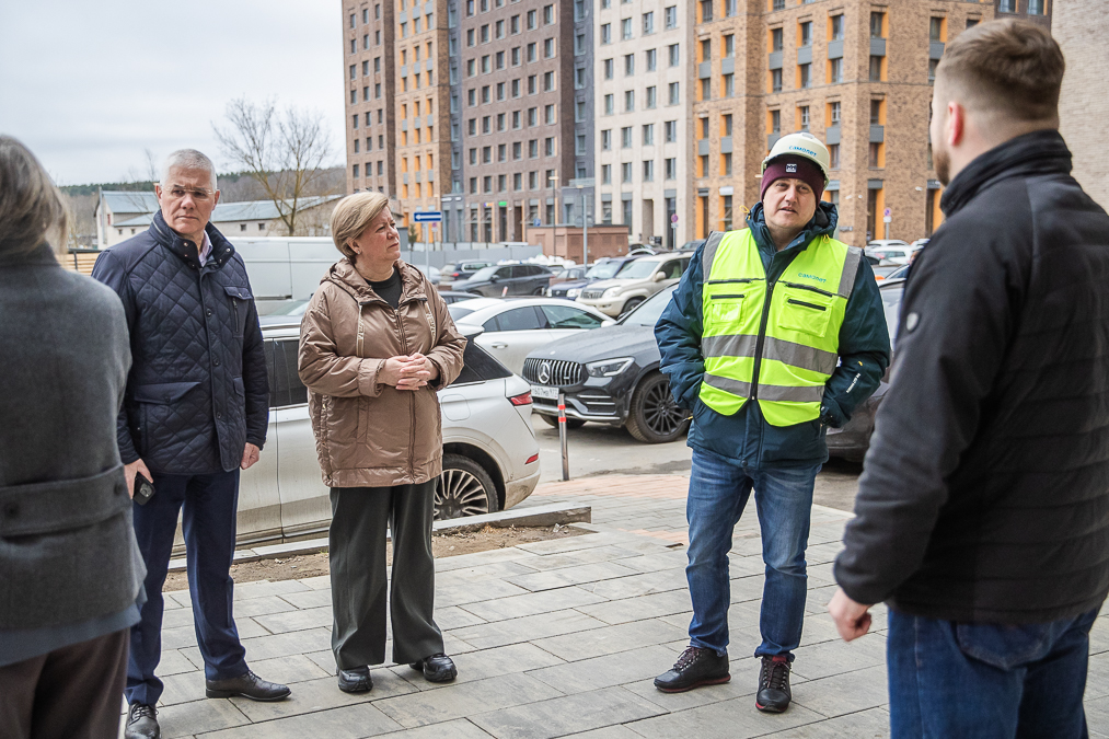 На стройплощадку медицинского учреждения Андрей Иванов приехал вместе с первым заместителем председателя Мособлдумы Ларисой Лазутиной и главврачом Одинцовской областной больницы Иваном Каприным.