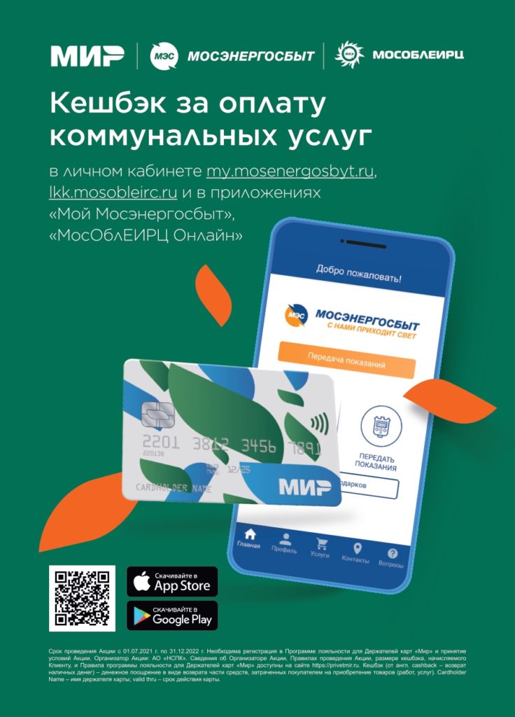 Жители Московской области, оплачивающие коммунальные счета через личный кабинет МосОблЕИРЦ, могут воспользоваться программой лояльности «Кешбэк «Мир»». За несколько месяцев по одному лицевому счету абоненты могли получить в общей сложности до одной тысячи рублей.