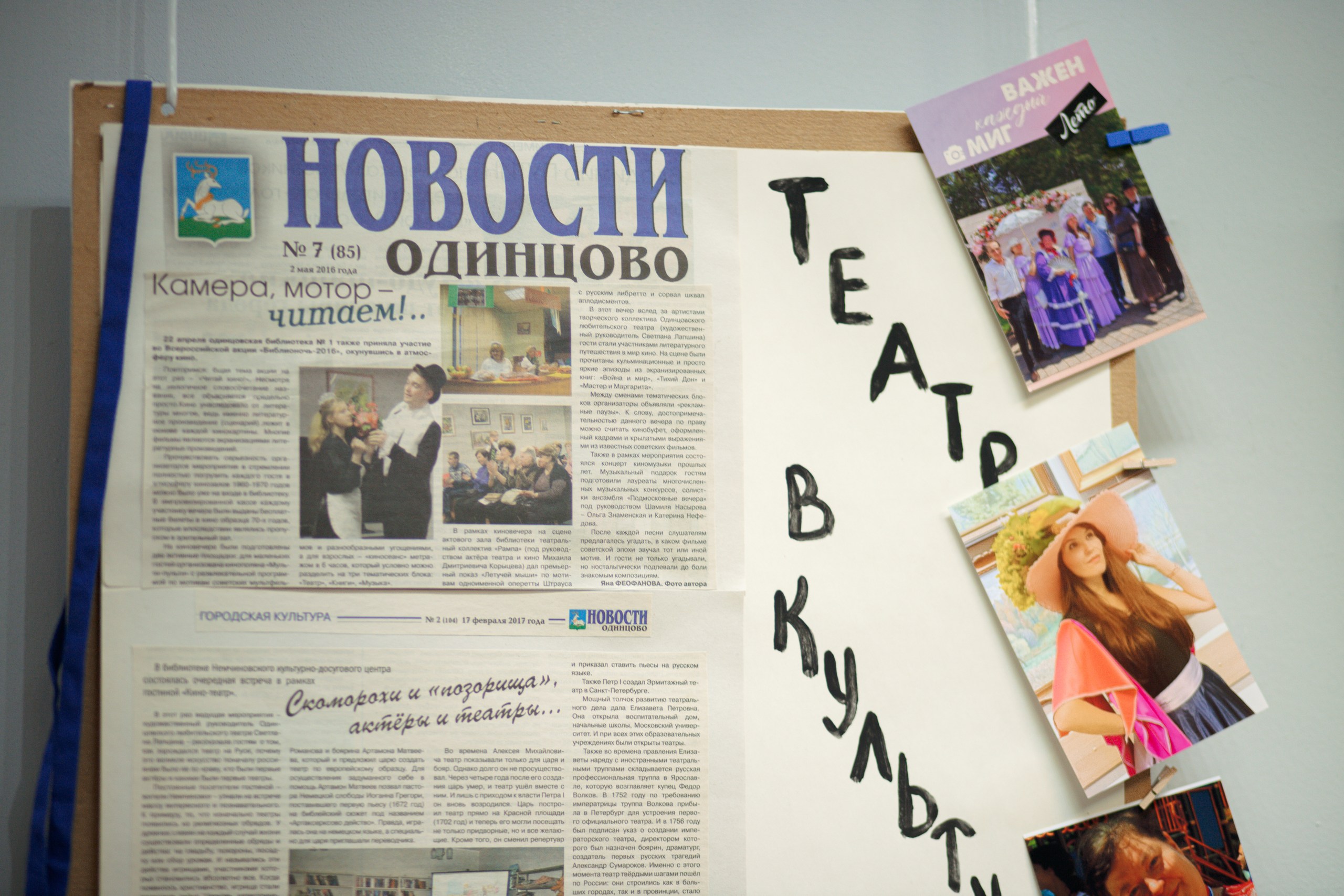 На выставке также можно было посмотреть и собственную газету Одинцовского народного театра с символическим названием «Главная роль». Артисты выпускают ее своими силами с 2023 года, четыре раза в год. Тираж – 500 экземпляров. Газету можно бесплатно взять в том же Немчиновском КДЦ.