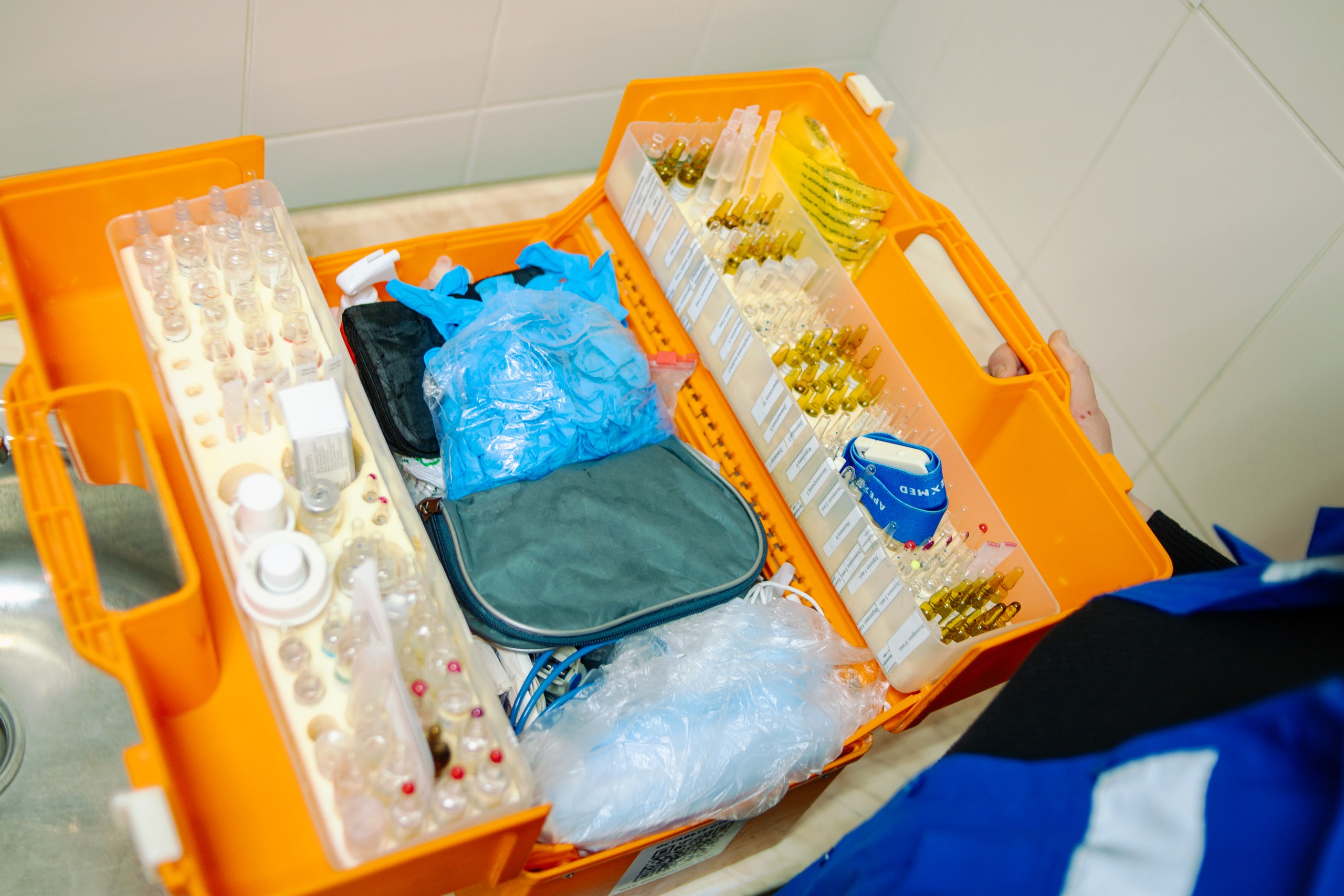 Помимо работы в диспетчерской, Дина Шатровская пополняет те самые оранжевые чемоданчики, с которыми врачи скорой приезжают на вызов, готовит аппараты ЭКГ и дефибрилляторы. В чемоданчиках все необходимые препараты чтобы купировать острое состояние пациента. Попробовали с коллегой подержать – килограммов пять, не меньше. А ведь с ним приходится ходить сутками, в том числе в многоэтажки, где как назло сломался лифт…