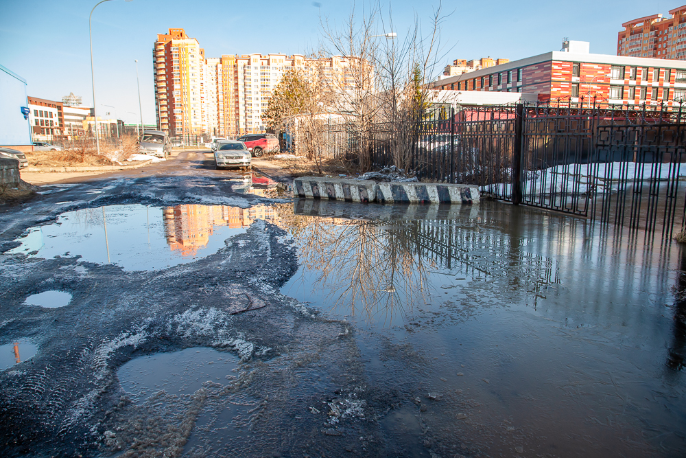 И, наконец, многие жители одинцовских микрорайонов прямо предупреждают: появление подобной техники на их дорогах чревато неприятностями. Внутриквартальные проезды настолько плохо выполнены застройщиками, что трудности испытывают даже автомобили. Разве что внедорожники способны двигаться по таким ухабам и ямам. Жалоб на состояние дорог после их вскрытия от снега и льда — множество, такое впечатление, что асфальт здесь просто смывает водой. Ситуацию усугубляет чересполосица, отражённая на кадастровой карте. Дороги общего пользования принадлежат органам муниципального самоуправления, которые отвечают за их обслуживание. Однако если внутриквартальный проезд входит в состав общего имущества, то в кадастре эти участки помечены как частная собственность, и обслуживание дорог — обязанность управляющих организаций. Мало того, что у семи нянек дитя без глаза, так ещё и для написания жалобы жителям приходится искать на кадастровых картах, какая «нянька» за какой ухаб отвечает. В качестве примера — фото из микрорайона «Гусарская баллада», куда роботам-доставщикам лучше не совать свои колёса.