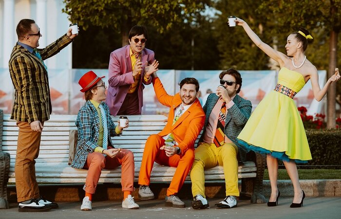 В США ил полностью экипировали по последней моде. Остроносые ботинки, зауженные брюки, пиджаки, шляпы, пальто, новые причёски. Настоящие стиляги. «Битлз» пока ещё «нервно курят в сторонке».