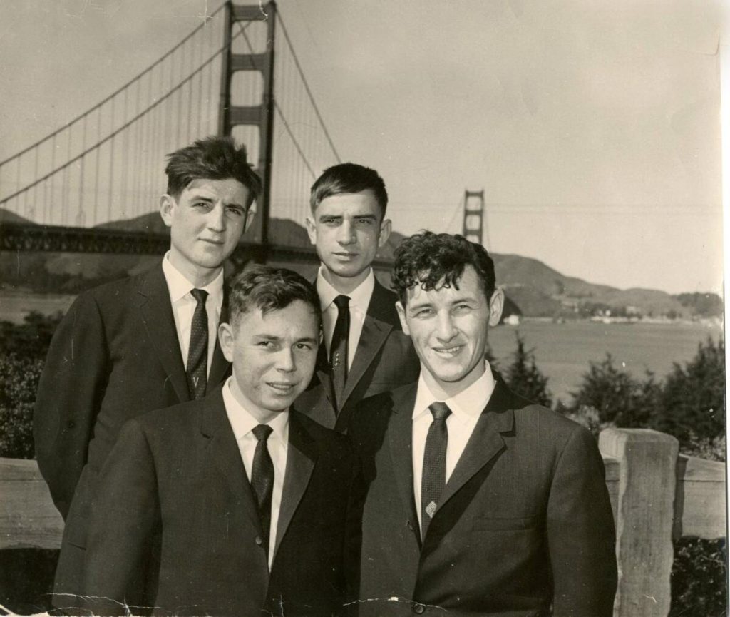 Весь 1960-й год они были мировыми знаменитостями, кумирами сотен миллионов людей. Но 12 апреля 1961 миру явился новый кумир. Юрий Гагарин. Символично. Одними из первых космонавта поздравила «великолепная четвёрка» уже бывших солдат-стройбатовцев.